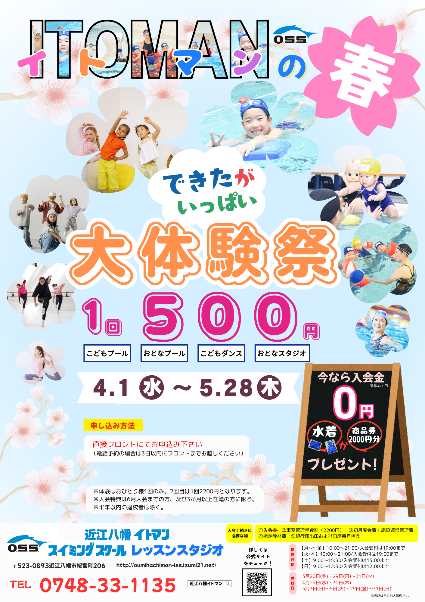 入会金0円(通常5.500円)+指定水着のプレゼント or 商品券2000円分プレゼント!